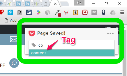 Die Pocket Erweiterung hat die besuchte Seite unter dem selbst gewählten Tag gespeichert