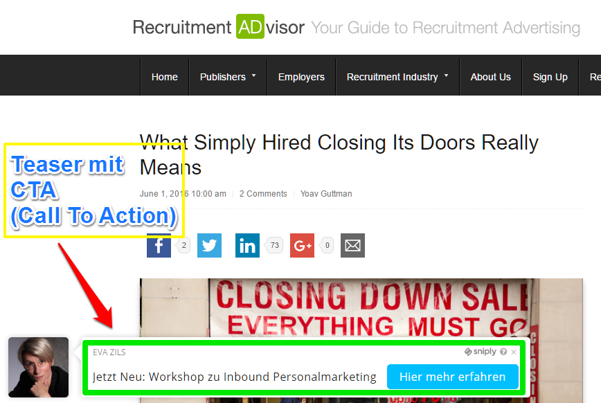 Installiert anschließend die Sniply Chrome Extension, erstellt Eure Call to Actions, und schnipp-schnapp, habt Ihr Eure Botschaft im Beitrag eines Anderen platziert.