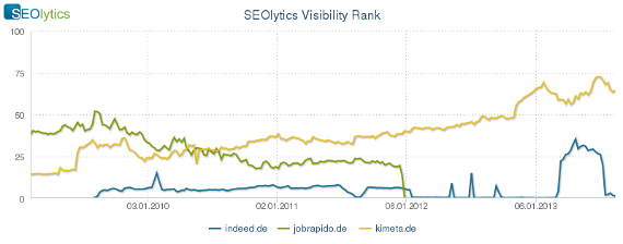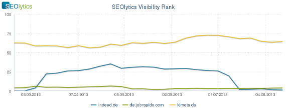 indeed-jobrapido-kimeta 2013-08-20 SEOlytics Visibility Rank