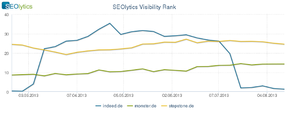 indeed-monster-stepstone 6months 2013-08-20 SEOlytics Visibility Rank