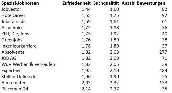 Job AG und alma mater sind Personaldienstleister und zählen damit ebenfalls nicht zu den typischen Stellenbörsen (sonst könnte man auch die Jobbörse von beispielsweise Siemens oder Adecco bewerten, und das läuft dann eher unter dem Label Firmen Karriereseite). Stellen-online.de ist in dem Sinne auch keine Jobbörse, da dies ein Portal einer Anzeigenagentur ist.