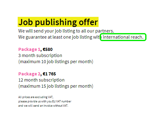 Die JobDirect24 Association stellt sich auf seinen Seiten wie eine Posting-Agentur dar und schreibt selbsbewusst, dass sie gerade einmal 6 Monate jung wäre, aber schon viele Recruitment-Preise eingeheimst hätte – ohne Namen zu nennen.