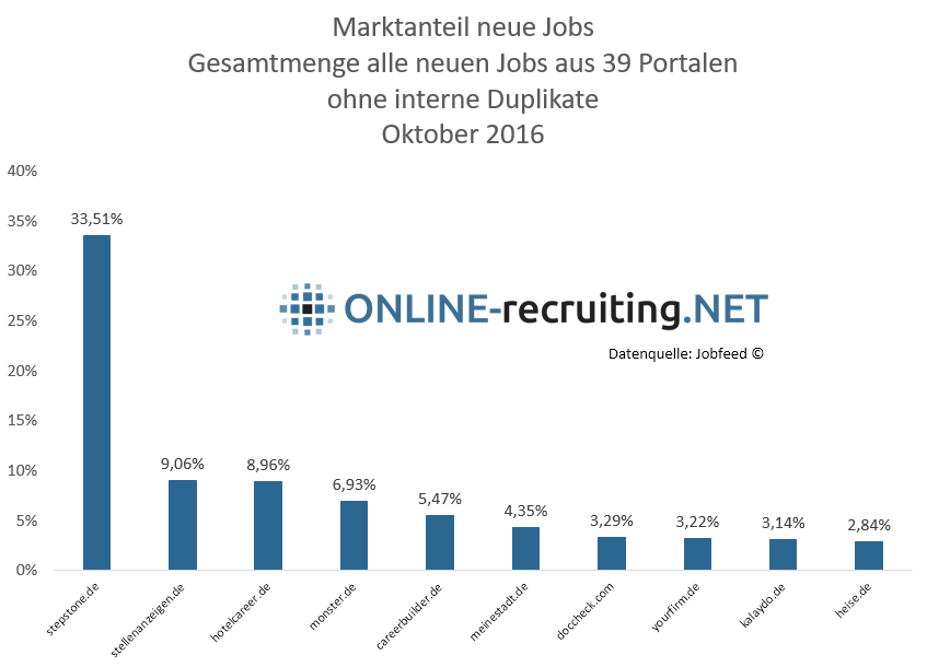 Die Prozente Marktanteile aus 39 kommerziellen Jobbörsen in Deutschland