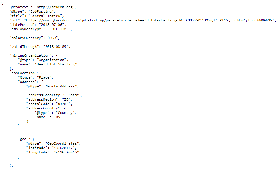 • 1. Überprüfen Sie den HTML Code Ihrer aktuellen Jobs: Gucken Sie in den HTML Code Ihrer Stellenangebote, die Sie online veröffentlicht haben. Finden sich darin eventuell bereits strukturierte Daten, wie Google sie zwingend fordert? Ein Beispiel eines entsprechenden “Markup” sieht so aus: