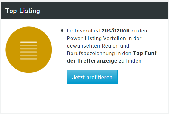 Wer noch mehr Reichweite möchte, genehmigt sich das “Top Listing” und ist damit auch auf passenden regionalen und Branchenportalen – auf denjenigen im jobchannel AG Verbund natürlich – mit drauf: