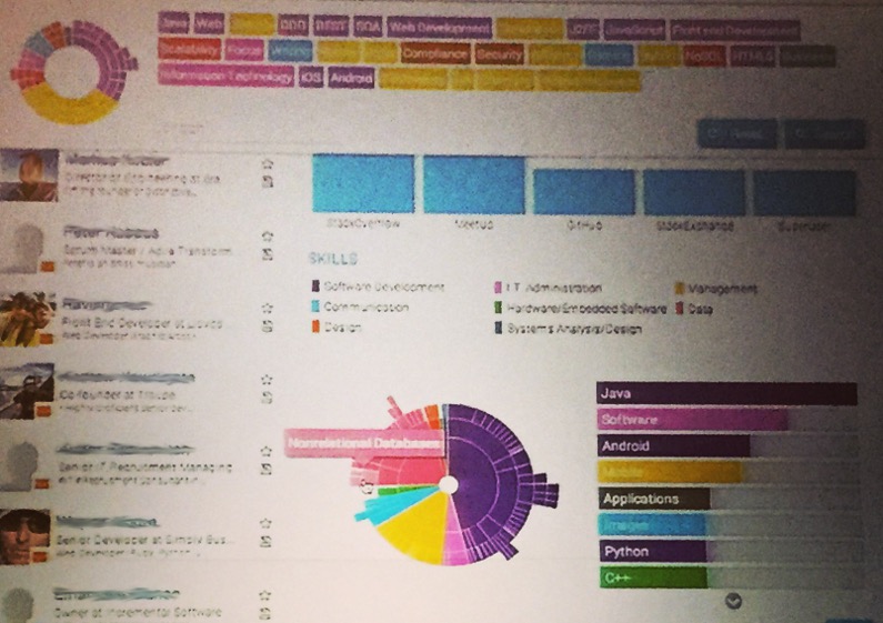 Sehr schön an Open Web – egal in welcher Sprachversion – finde ich die visuelle Darstellung der Kompetenzen und beherrschten Computersprachen in den Profilen, hier als (visuell leider etwas schwaches) Foto vom European Job Board Summit: