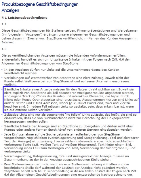 Durch einen Leserkommentar auf einen meiner Blogposts von Februar wurde ich auf eine erneute AGB-Änderung bei StepStone hingewiesen (s. hervor gehobener Text in der Grafik):
