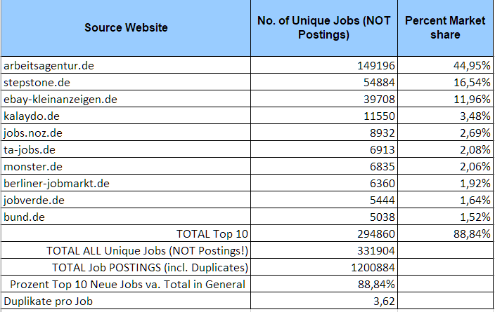 In meinen Analysen habe ich vor allem die internen Anzeigen Doppelungen auf einer Jobbörse ausgeklammert.